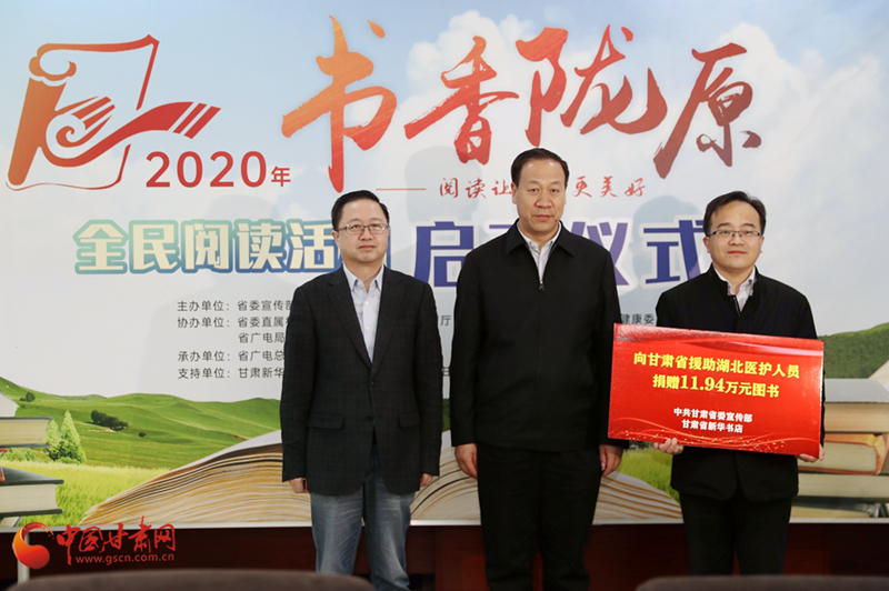 啟動儀式上,省委宣傳部副部長、省新聞出版(版權)局局長王成勇宣布2020年“書香隴原”全民閱讀活動正式啟動。省委宣傳部聯合讀者集團新華書店飛天傳媒股份有限公司通過省衛(wèi)生健康委,向全省796名支援湖北醫(yī)護人員贈送了價值11.94萬元的圖書。省內10家出版社的相關負責人通過中國甘肅網現場直播為現場嘉賓、廣大網友推介優(yōu)秀甘版圖書。