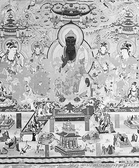 這幅壁畫是以繪畫的形式闡述了《彌勒下生經》中所描繪的“人命將終,自然行詣冢間而死”的內容。