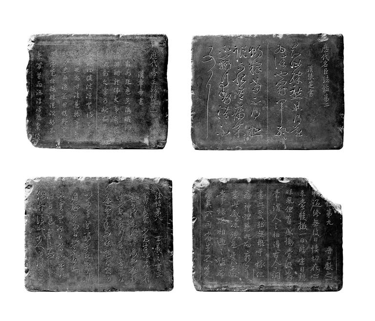 恰好此時(shí)金石摹刻家溫如玉、張應(yīng)召師徒重摹上石,肅憲王遂決心公諸天下,傳于后世。溫、張師徒二人受肅憲王之命摹刻“宋本”《淳化閣帖》,選定石質(zhì)密致,具青灰色,擊之有鏗鏘聲的富平“銅磬石”,鐫刻碑帖。