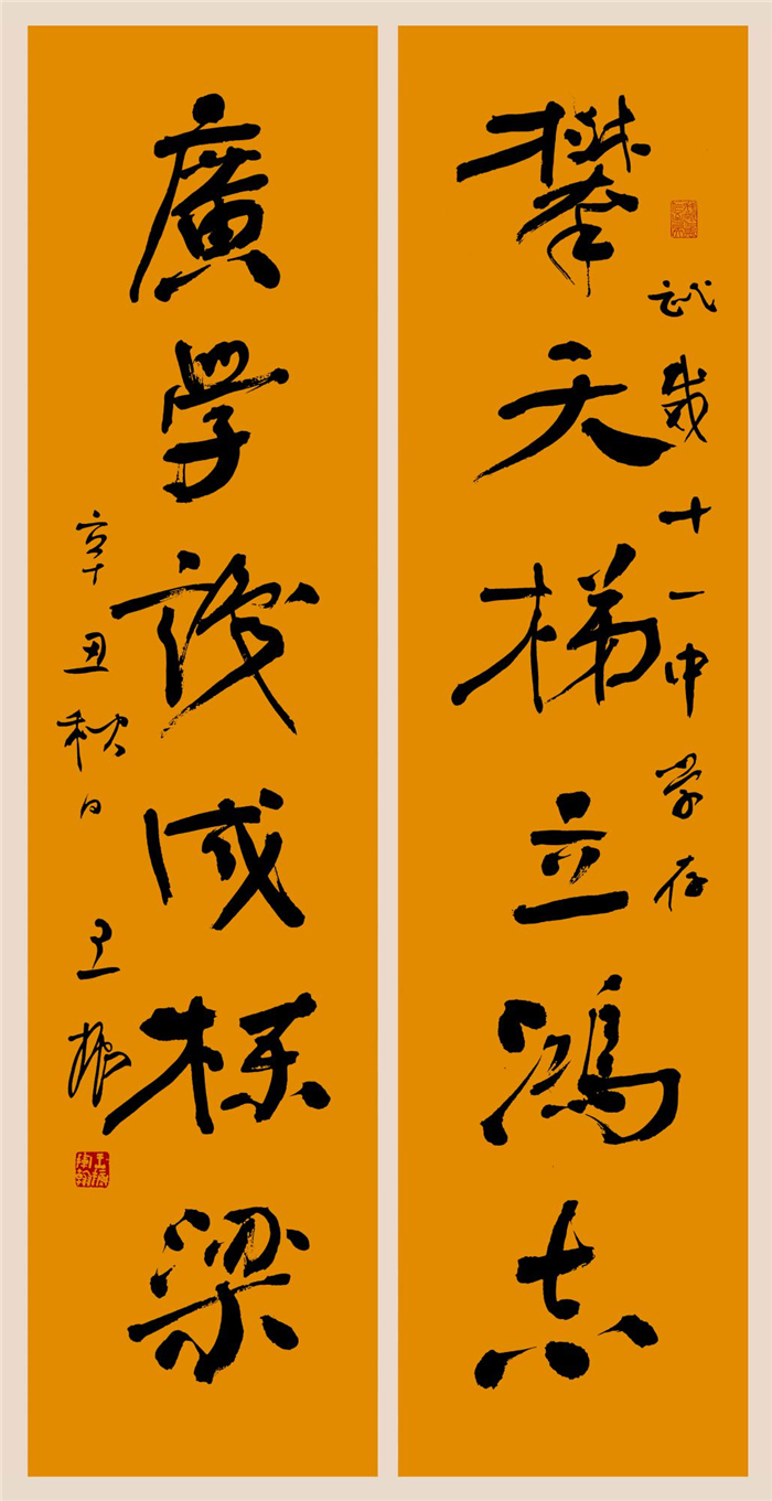 莫言擬聯(lián)、書法家王振撰寫作品:攀天梯立宏志,廣學(xué)識成棟梁