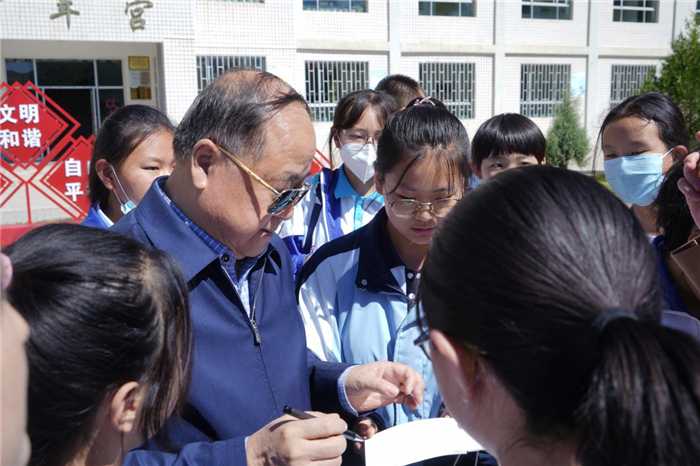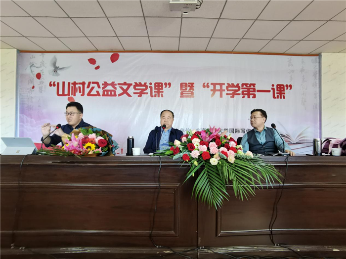 中國甘肅網(wǎng)9月6日訊 9月6日上午九點,由北京師范大學(xué)國際寫作中心、武威市教育局、武威市文體廣電和旅游局、涼州區(qū)教育局共同主辦的“山村公益文學(xué)課”暨“開學(xué)第一課”在武威第十一中學(xué)開講。活動由武威第十一中學(xué)趙衛(wèi)國校長主持。諾貝爾文學(xué)獎獲獎作家、北京師范大學(xué)國際寫作中心主任莫言教授以《讀書與寫作》為題,為十一中的師生講了一堂別開生面、深入淺出的寫作課。隨后,北京師范大學(xué)國際寫作中心主任助理翟文鋮教授、西北師范大學(xué)傳媒學(xué)院院長徐兆壽教授,分別就同學(xué)們的作文進(jìn)行了現(xiàn)場指導(dǎo)。參加此次活動的還有北京舒同文化研究會會長王振先生、北京師范大學(xué)國際寫作中心主任助理張曉琴教授。