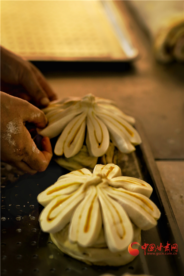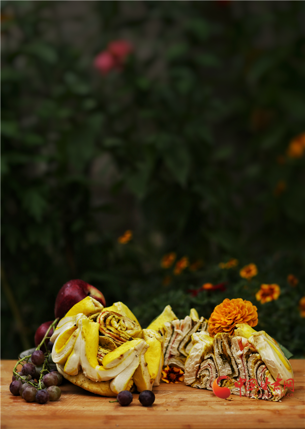 香豆、油酥、姜黃、紅曲、胡麻……最樸實(shí)的食材,最傳統(tǒng)的工藝,讓月餅在蒸汽中充分鼓脹,最終飽滿盛開。卷沿彎曲,狀似玫瑰。切開,內(nèi)里豐富,色彩斑斕,如同張掖丹霞,熠彩生輝,包羅萬象。(本網(wǎng)記者 宋芳科 通訊員 張文)