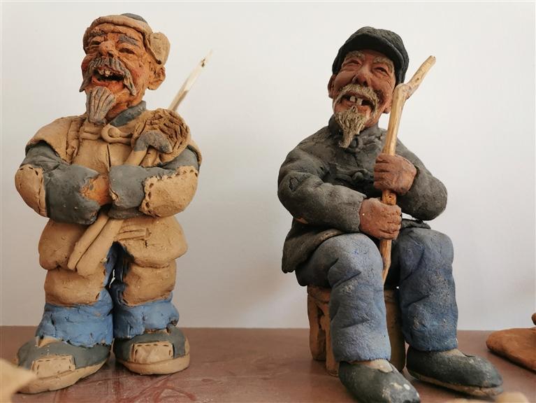 記者環(huán)顧四周,只見滿臉堆笑的“老頭老太”、活潑可愛的“牧童”、陽光清純的“少先隊(duì)員”等泥塑作品形象鮮活生動,依次有序地?cái)[放在展架上。