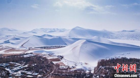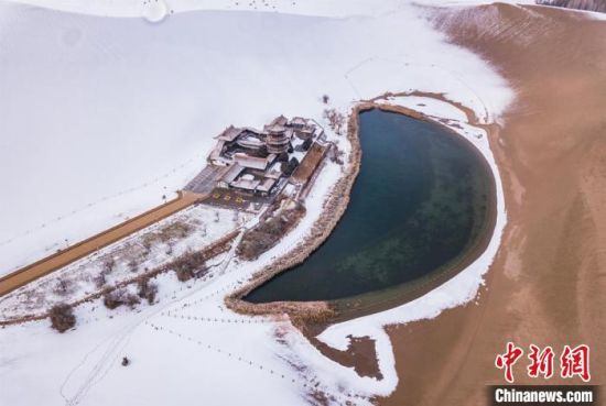 11月20日,雪后天晴,甘肅敦煌月牙泉銀裝素裹分外美麗?!⊥醣筱y 攝