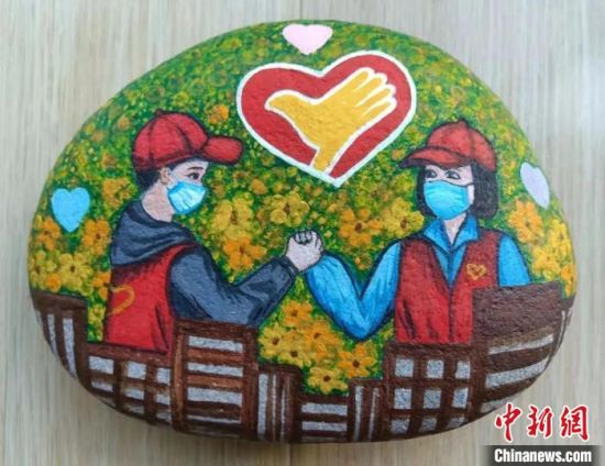 憧憬疫情過去的“等待”,逆行的白衣天使,溫柔守護的“大白”,堅守一線的志愿者……連日來,甘肅嘉峪關(guān)市逸夫小學(xué)教師殷曉華用當?shù)靥赜械母瓯跒┦^,創(chuàng)作了多幅石頭畫,記錄了甘肅本輪疫情下的種種“柔情”,謹記珍惜當下美好的歲月。