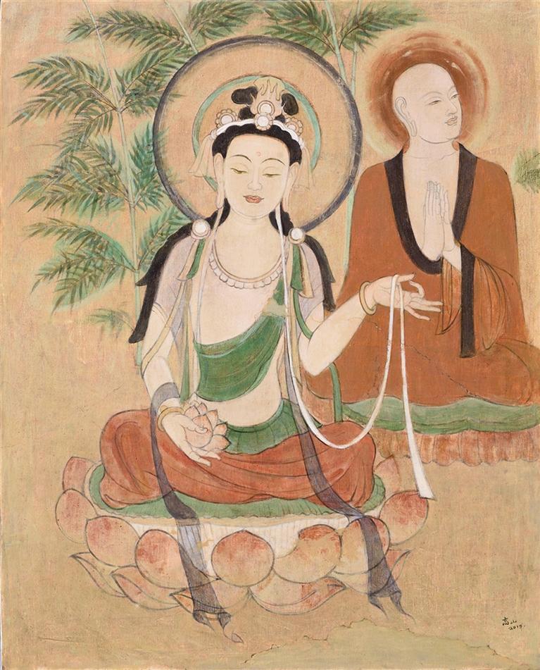 甘肅省知名藝術(shù)家梁宗孟創(chuàng)作的《眾生相》《舞者》,敦煌美術(shù)研究所所長(zhǎng)、敦煌壁畫臨摹專家高山創(chuàng)作的《聽法菩薩與比丘(初唐)修正臨摹》,清華大學(xué)吳冠中藝術(shù)研究中心研究員、甘肅省博物館研究員梁雄德創(chuàng)作的《蘇公塔》《佛陀和佛菩薩》等5幅油畫精品,向西方藝術(shù)界展示了甘肅省藝術(shù)家在當(dāng)代繪畫領(lǐng)域的成就。