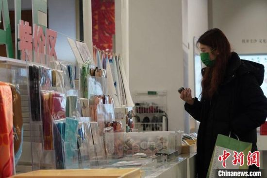 1月14日,在甘肅省博物館文創(chuàng)中心的以銅奔馬為主題的文創(chuàng)產(chǎn)品吸引人們駐足觀看。九美旦增 攝