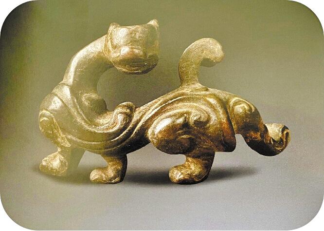 這件文物最吸引目光的便是回望的神情和充滿(mǎn)力量且?guī)е┱{(diào)皮的后肢。
