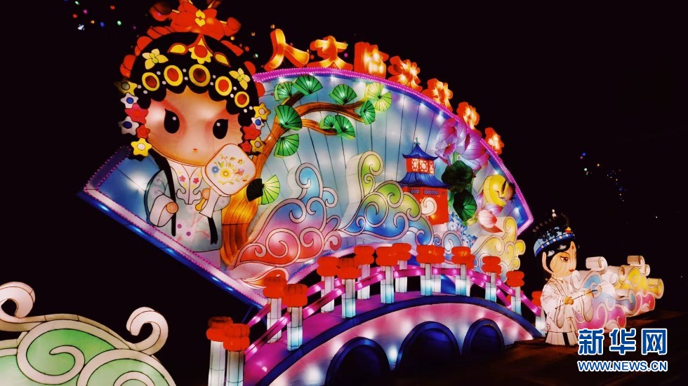 據(jù)了解,此次燈會(huì)共有親子娛樂(lè)區(qū)、漢文化體驗(yàn)區(qū)、年貨區(qū)、紅色精神區(qū)、文化集市區(qū)等9大板塊74組大型燈組,將一直持續(xù)到農(nóng)歷正月十五。新華網(wǎng)發(fā) (馬笑非 攝)