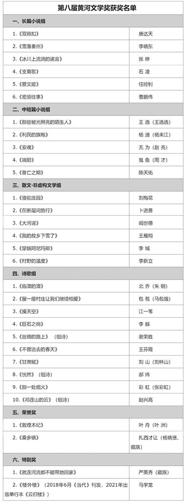 原標(biāo)題:第八屆黃河文學(xué)獎 獲獎名單公示