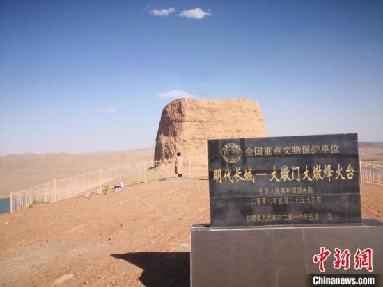 圖為位于甘肅酒泉市金塔縣境內(nèi)的全國(guó)重點(diǎn)文物保護(hù)單位——大墩門(mén)大墩明長(zhǎng)城烽燧。(資料圖) 馮志軍 攝