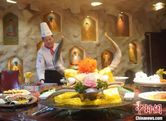 3月下旬,國(guó)家特一級(jí)烹調(diào)師趙長(zhǎng)安圍繞長(zhǎng)期從事的敦煌菜研究接受中新網(wǎng)記者采訪,講述文化大餐的奧秘所在。 九美旦增 攝
