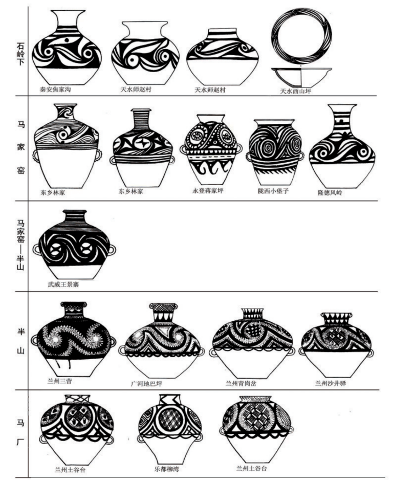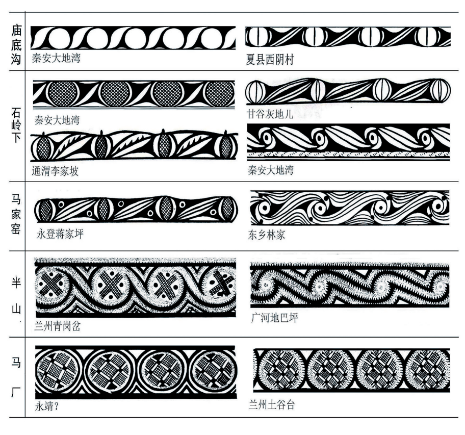在20世紀(jì)五六十年代,在甘肅及鄰近的青海東部地區(qū)新發(fā)現(xiàn)大量的馬家窯文化遺址,同時也進(jìn)行了一些發(fā)掘工作,為探索馬家窯文化及彩陶的來源進(jìn)行了深入研究。關(guān)于馬家窯文化與仰韶文化的關(guān)系,體現(xiàn)在彩陶上的線索非常明確,石興邦先生就此進(jìn)行了探討,他在1962年發(fā)表的一文中認(rèn)為馬家窯文化彩陶受到廟底溝類型彩陶的影響,紋飾母題與演變規(guī)律都有相似之處。嚴(yán)文明先生1978年發(fā)表的《甘肅彩陶的源流》,論及半坡類型向隴東和廟底溝類型向隴西及青海東部的擴(kuò)展,認(rèn)為馬家窯文化彩陶的源起與中原地區(qū)的仰韶文化有關(guān)。
