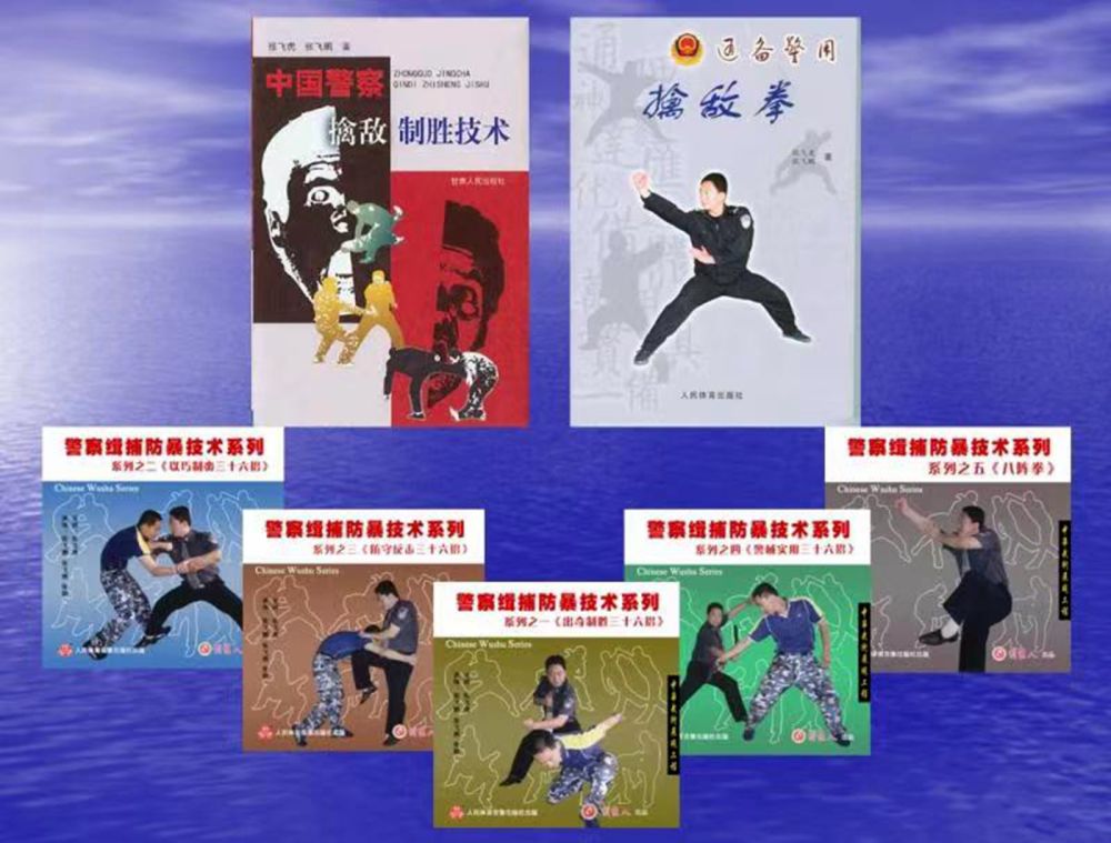 張飛虎在習(xí)武之余,學(xué)術(shù)上也一路精進(jìn),展現(xiàn)了他學(xué)文的天賦,他不但是警院教授,還曾是警院學(xué)報(bào)副主編,除了先后出版的4部學(xué)術(shù)專著外,還錄制了“警察緝捕防暴技術(shù)”系列教學(xué)光碟,在國內(nèi)外發(fā)行,并有一項(xiàng)科研成果申報(bào)為國家專利。一位武術(shù)名家,在學(xué)術(shù)上有如此驕人的成就,實(shí)屬不易。治學(xué)之余,張飛虎還分別在《甘肅公安》和《蘭州公安》雜志上創(chuàng)辦并主持《招招制敵》與《實(shí)戰(zhàn)練兵》欄目,解說并實(shí)戰(zhàn)演練制敵招法。專著《中國警察擒敵制勝技術(shù)》一書2010年被公安部評(píng)為“全國公安機(jī)關(guān)優(yōu)秀培訓(xùn)教材”,書中首次提出了“軍隊(duì)擒敵技術(shù)和警察擒敵技術(shù)相殊差別”的觀點(diǎn),并對(duì)擒敵技術(shù)的每一招法進(jìn)行了生理學(xué)、生物力學(xué)的分析,從而科學(xué)地將擒敵術(shù)上升到一個(gè)新的理論與實(shí)戰(zhàn)融通的高度。更為可貴的是,《中國警察制勝技術(shù)》將法律精神融入其中,使招法的運(yùn)用有了法律依據(jù),盡顯法制社會(huì)的時(shí)代精神,也與文明社會(huì)的要求不謀而合,將警察擒敵技術(shù)與實(shí)用法律無縫銜接。針對(duì)警察沿襲軍隊(duì)擒敵拳無主體身份特點(diǎn)之不足,創(chuàng)編了首套以警察擒敵技術(shù)為主體內(nèi)容的擒敵拳——《通備警用擒敵拳》,填補(bǔ)了公安機(jī)關(guān)無警用擒敵拳的空白。2021年,作為建黨100周年的獻(xiàn)禮,張飛虎與其摯友張勇先生聯(lián)袂出版《維穩(wěn)中國》,為國家反恐維穩(wěn)工作貢獻(xiàn)了綿薄之力。