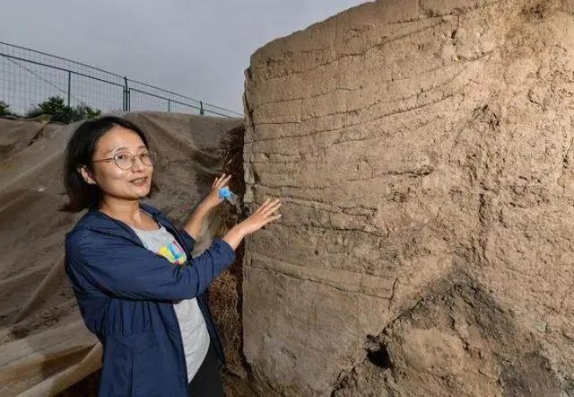 考古工作人員在展示南佐遺址內出土的厚度為3-5毫米的白陶器殘片(8月23日攝)。新華社記者 李賀 攝