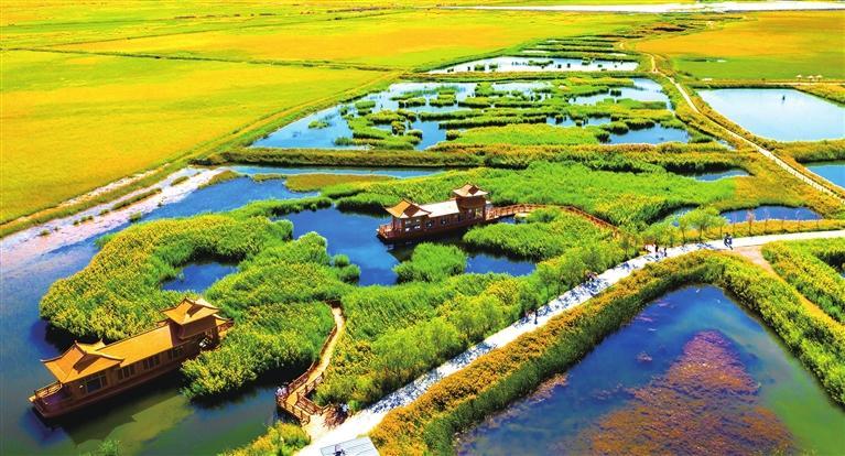 酒泉六分濕地景區(qū)是西北干旱荒漠區(qū)彌足珍貴的自然資源,也是重要的候鳥(niǎo)遷徙通道和停歇地。景區(qū)內(nèi)草長(zhǎng)鶯飛,綠樹(shù)成蔭,蘆葦、香蒲連綿不絕,濕地坑塘星羅棋布,觀光棧道、亭臺(tái)樓閣便于賞景,春來(lái)踏青夏避暑,秋來(lái)賞景冬納雪,吸引了不少游客前來(lái)打卡。
