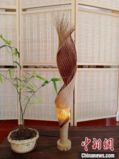 “竹編分為平面竹編和立體竹編,后者難度稍大,在經(jīng)緯編織的基礎(chǔ)上,還要穿插各種技法,如編、插、穿、削、鎖、釘、扎、套等,使編出的圖案變化多樣。”張照杰以一件“網(wǎng)紅產(chǎn)品”火炬造型落地?zé)魹槔f,從選材到制作完成,他耗費(fèi)了近200個小時。