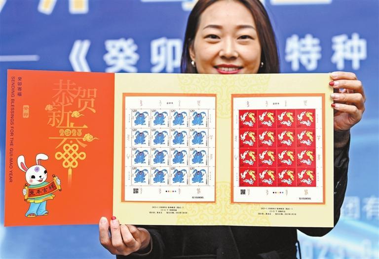 中國甘肅網(wǎng)1月6日訊 據(jù)蘭州晨報報道(奔流新聞·蘭州晨報記者王思璇)1月5日,中國郵政發(fā)行《癸卯年》特種郵票1套2枚,圖案內(nèi)容分別為:癸卯寄福、同圓共生,這套特種票是中國生肖郵票第四輪中的第八套。同日,《癸卯年》特種郵票在蘭州市各集郵營業(yè)網(wǎng)點發(fā)售。