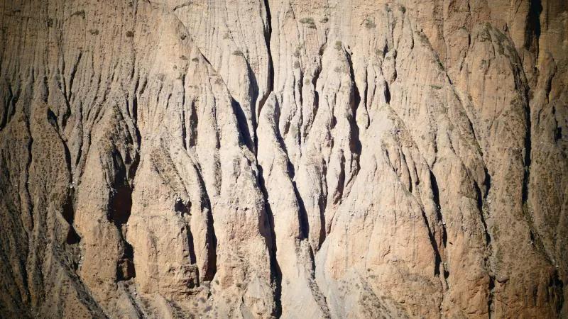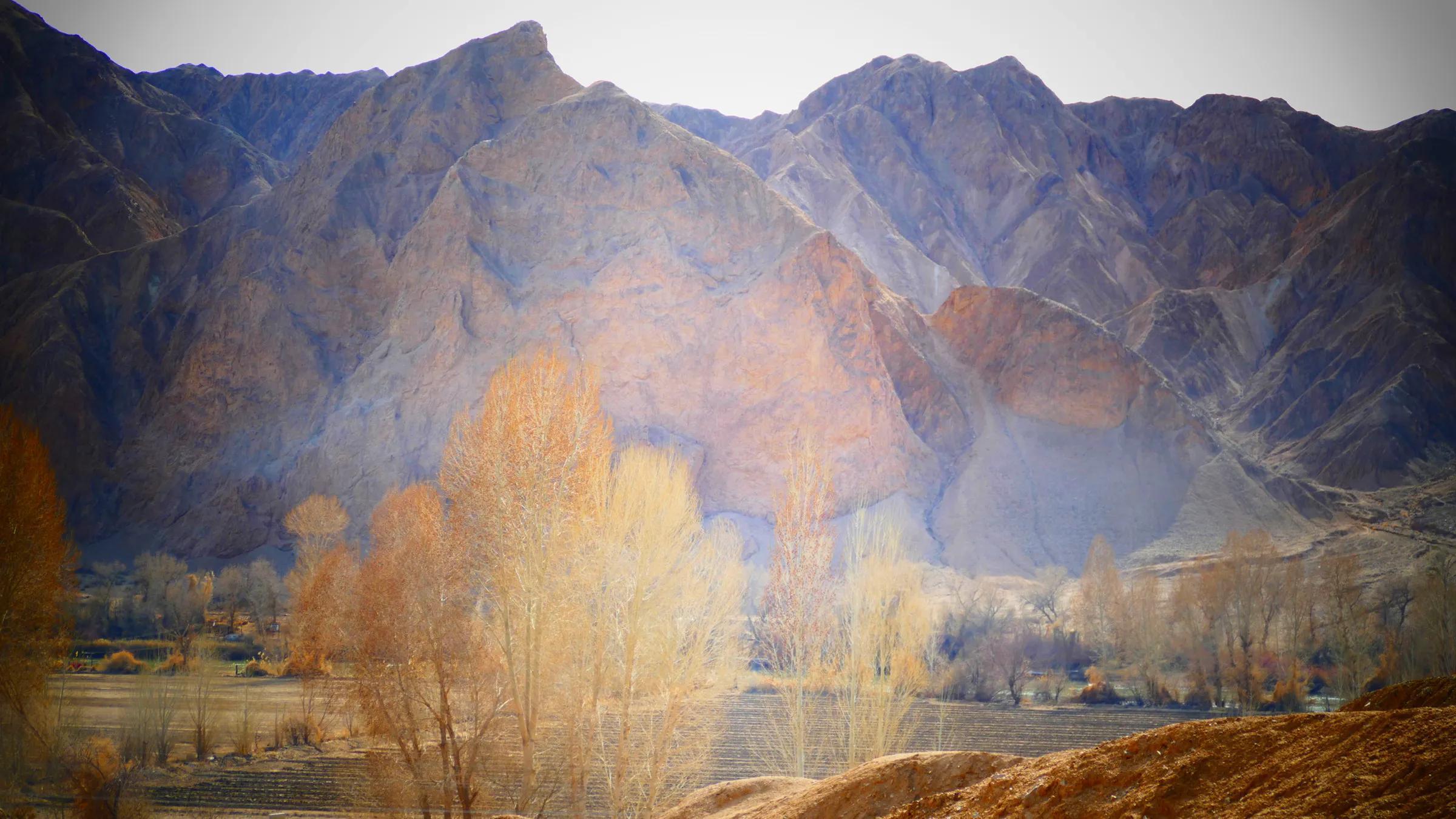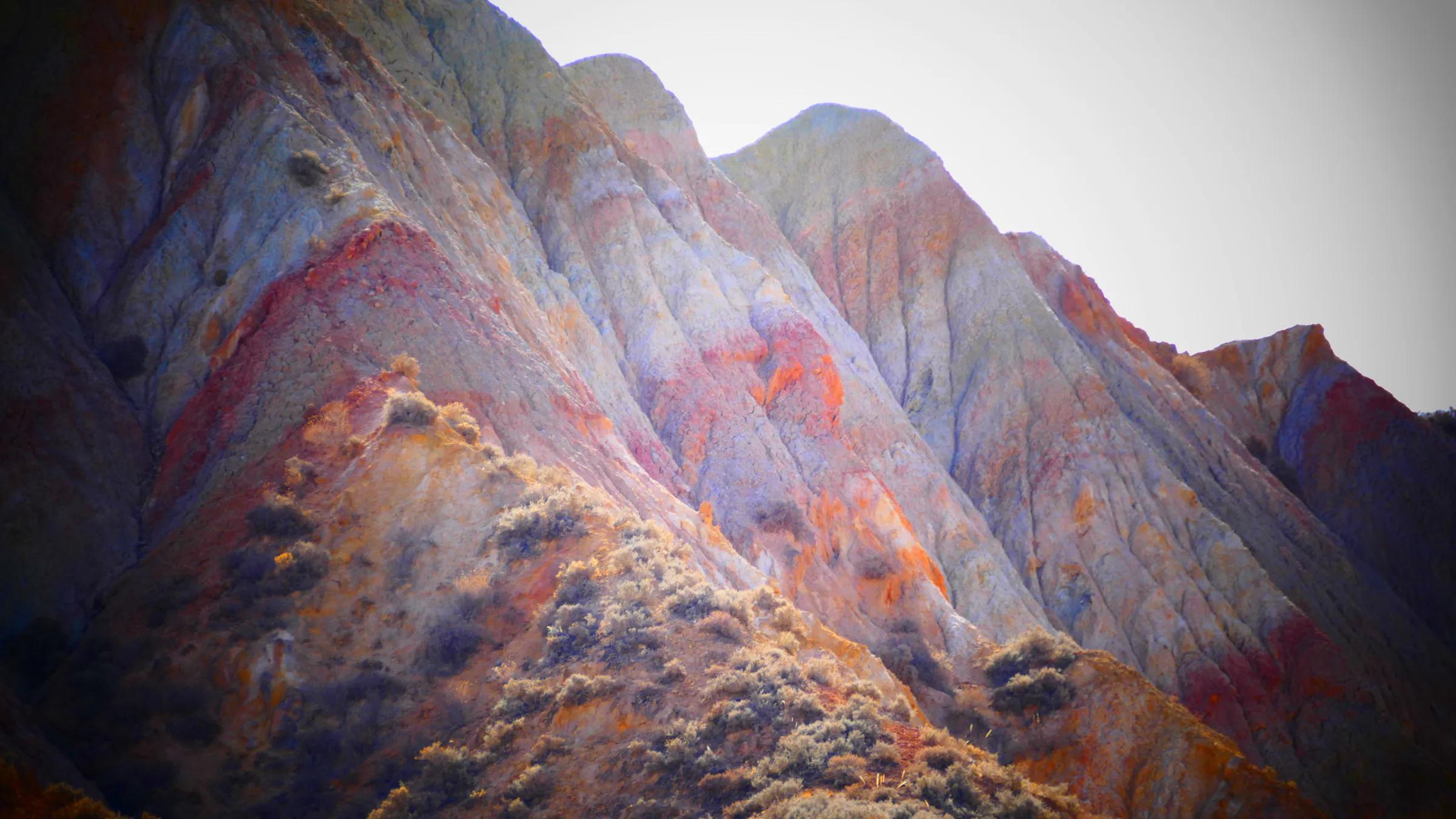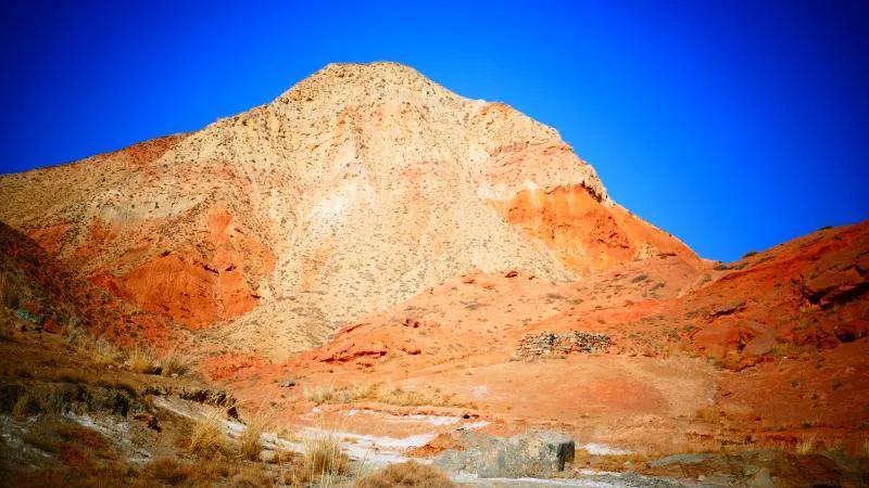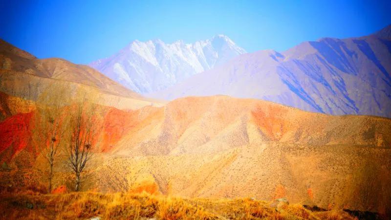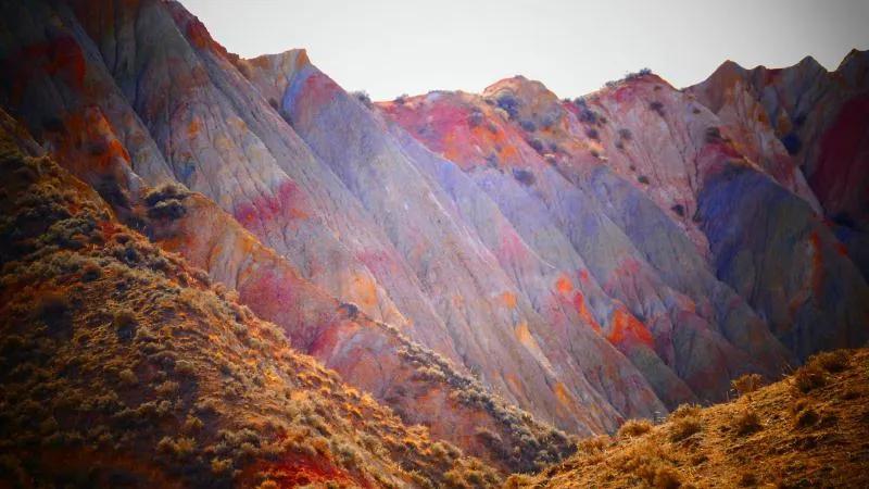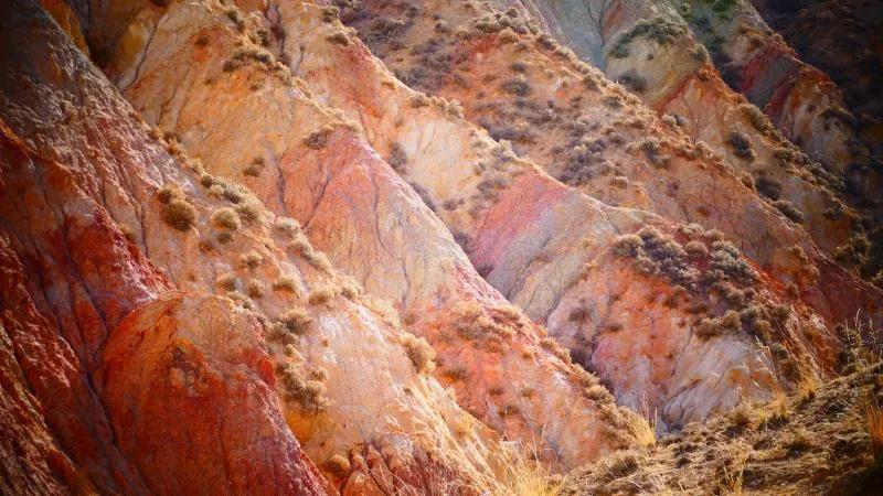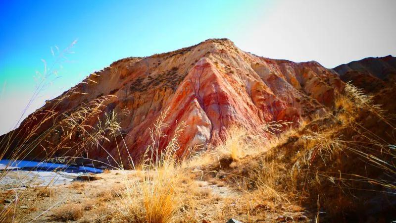 從馬營河大峽谷南端再向南一眼望去就是祁連雪山,沿著河道通過高臺(tái)縣新壩鎮(zhèn)的紅沙河村,向東南走進(jìn)祁連山脈可見一片五顏六色的奇觀,又一個(gè)丹霞地貌在祁連山展現(xiàn),可稱高臺(tái)“小泉丹霞〞。據(jù)說這個(gè)“丹霞”還沒有媒體“曝過光〞。