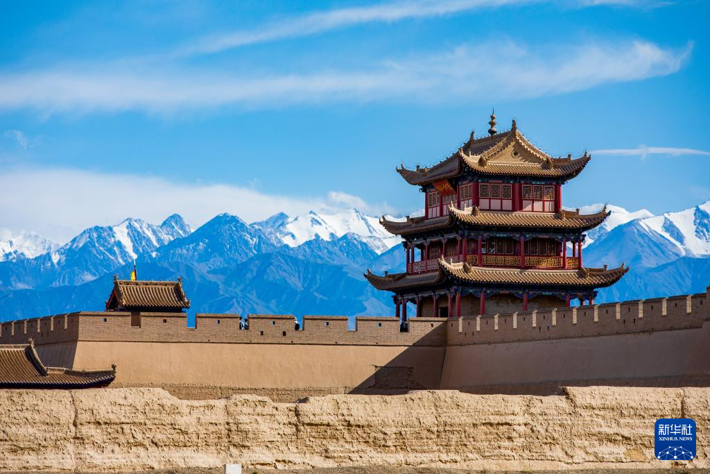 當(dāng)日,位于甘肅河西走廊的嘉峪關(guān)市在一場(chǎng)疾風(fēng)驟雨后,天空放晴,遠(yuǎn)處祁連雪山與嘉峪關(guān)關(guān)城交相輝映,構(gòu)成一幅壯美畫(huà)卷。