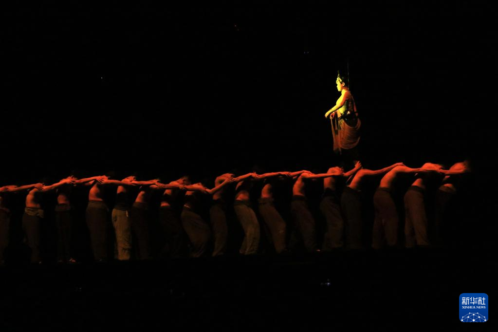 8月9日,演員在《又見敦煌》中表演。新華社記者 馬寧 攝