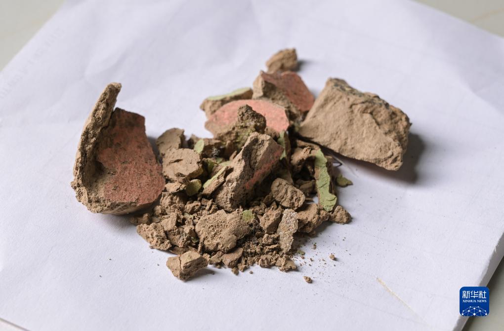 在秦始皇帝陵博物院文物保護(hù)部彩色陶俑修復(fù)室內(nèi)的工作臺上擺放著發(fā)掘出土的土塊,這些剝落的彩色土塊正等待修復(fù)人員采用精湛的技術(shù)復(fù)原(8月23日攝)。
