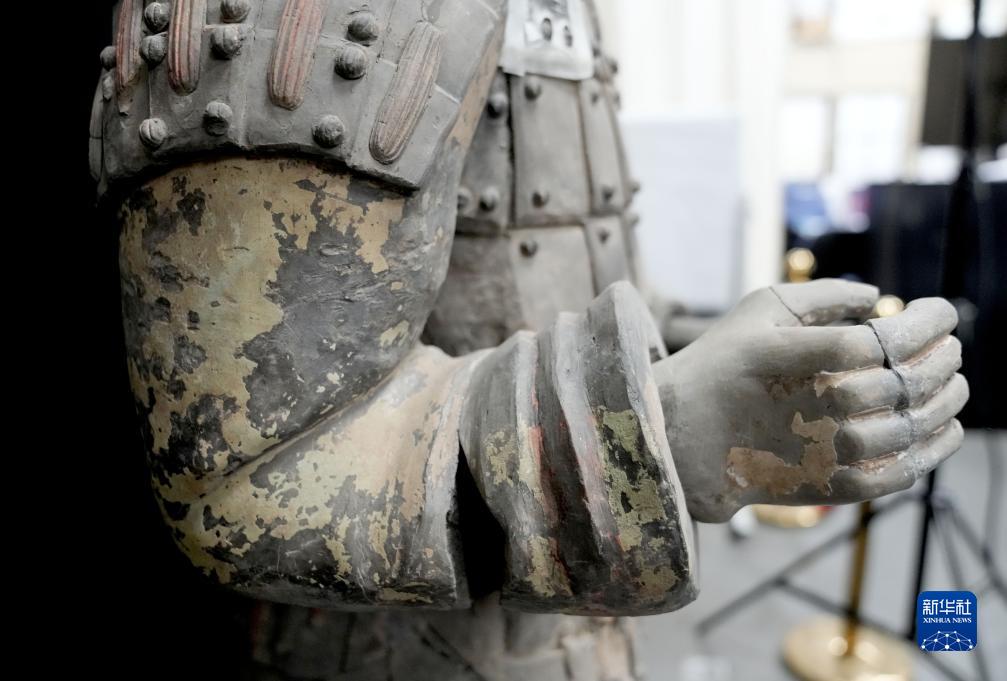 這是秦俑身上彩繪還原修復(fù)后的樣貌(8月23日攝)。