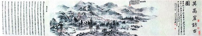 民國初年,張維返回蘭州之后,仍然念念不忘敦煌經(jīng)卷,曾三赴河西考察敦煌莫高窟。1940年,張維第三次考察敦煌莫高窟返回途經(jīng)武威時(shí),前往拜訪好友、甘肅近代著名書畫家范振緒,為其講述敦煌莫高窟的坎坷境遇與現(xiàn)狀。在交流中,張維請(qǐng)范振緒繪制《敦煌訪古圖》畫卷。1941年,范振緒繪制完成之后,張維將此圖帶回蘭州,并邀請(qǐng)張大千、于右任、高一涵、馮國瑞、曹經(jīng)沅等著名詩人題詠。