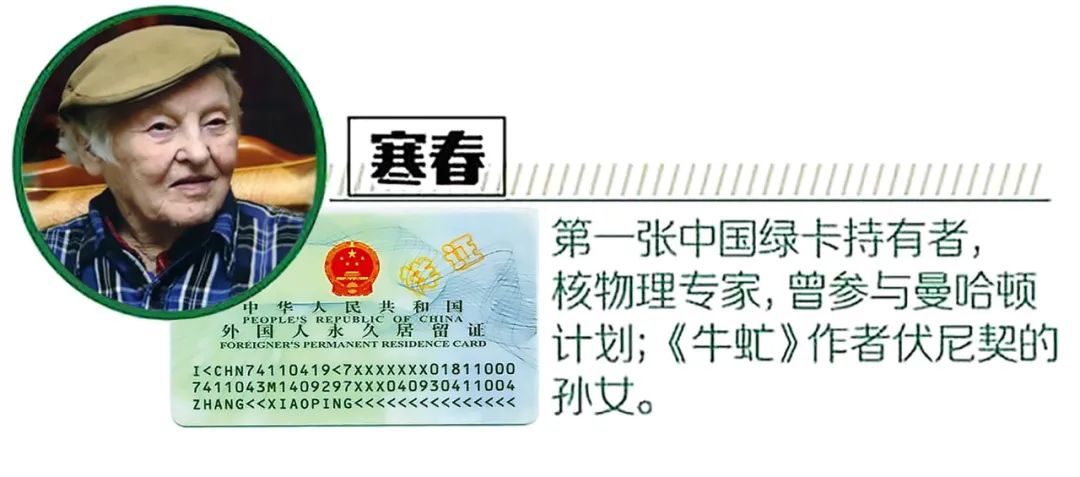 2004年8月15日,《外國人在中國永久居留審批管理辦法》正式頒布,規(guī)定外籍人申請合格者將獲得中國政府頒發(fā)的“外國人永久居留證”,我國正式開始實(shí)施外國人永久居留證管理制度。人們仿照國際慣用說法,稱中國開始實(shí)施“綠卡”制度,中國“綠卡”進(jìn)入2.0時(shí)代。持證者在中國的居留地、住房和就業(yè)皆不受限制,出入中國國境無須再簽證。綠卡不是國籍的變更,但是拿到綠卡的外籍友人在中國出入境,工作、旅行、生活會更加方便。拿到中國第一張“外國人永久居留證”的是放棄了自己心愛的核物理研究,而且不畏難苦,扎根農(nóng)村,為中國的奶牛改良工作奮斗了一輩子的美國知名核物理學(xué)家寒春。