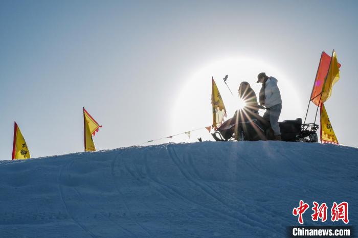 2024年1月7日,游人在敦煌文博冰雪場體驗雪地游玩項目。王斌銀 攝