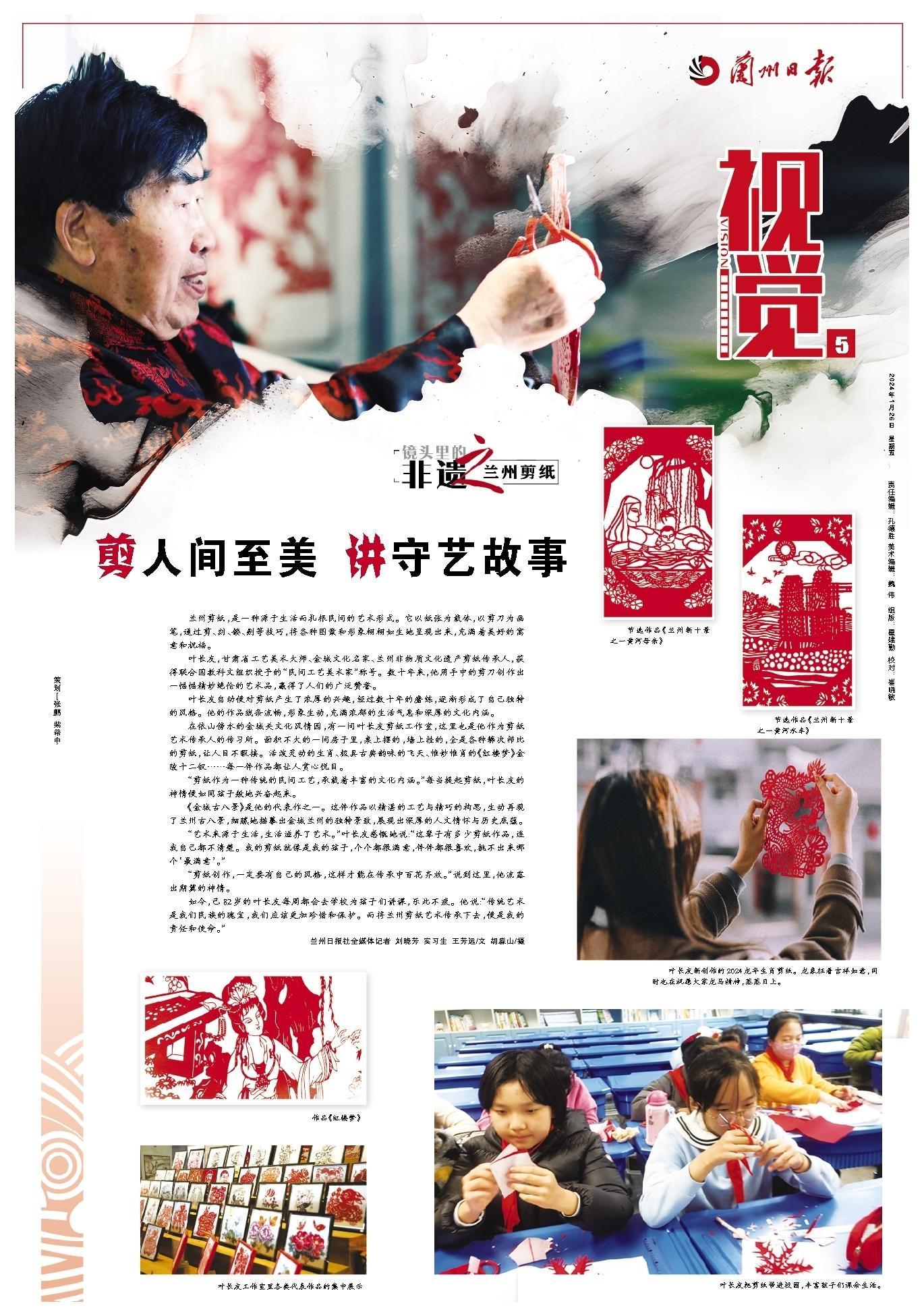 如今,已82歲的葉長友每周都會去學校為孩子們講課,樂此不疲。他說:“傳統(tǒng)藝術是我們民族的瑰寶,我們應該更加珍惜和保護。而將蘭州剪紙藝術傳承下去,便是我的責任和使命。”