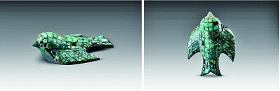 陜西省清澗縣寨溝商代遺址出土的鑲綠松石銅燕 中國社會(huì)科學(xué)院考古研究所供圖