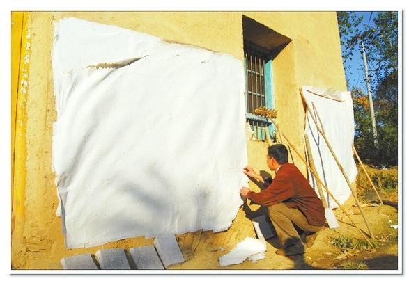 在李生武家的外墻上,我們看到一張張刷在墻上的構(gòu)樹皮紙,用手輕輕地撫摸著它們,感覺附著了勞作的纖維顯得那么綿軟親切。