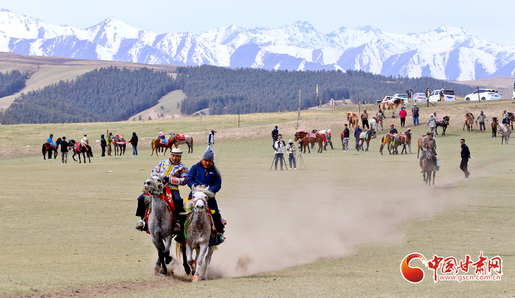 “五一”假期,甘肅省張掖市肅南裕固族自治縣康樂草原景區(qū)“民族大團(tuán)結(jié)”賽馬活動(dòng)拉開帷幕,騎手們在祁連山下的康樂草原上展開了民族走馬、速度賽馬角逐,吸引了眾多游客前往觀賞賽馬和領(lǐng)略雪山、森林、草原為一體的祁連山美麗景色。