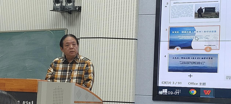 馮玉雷一直認(rèn)認(rèn)真真,埋頭干事。他心中有一個非常宏大的目標(biāo),向著這個目標(biāo)行進(jìn)過程中,腳踏實(shí)地。前幾年他在西北師范大學(xué)首開公選課《中國玉文化》,把玉文化作為專門的一門課來講,具有開拓性。玉文化作為一門學(xué)科,在全國各大高校此前還沒有先例,馮玉雷先生做了一件非常有意義的事情。這次講座對我非常有啟發(fā)。從這門課的內(nèi)涵來講,其實(shí)又是一個延續(xù):對傳統(tǒng)文化也好,考古文化也好,對甘肅省乃至整個中華大地,從玉文化開始出現(xiàn),發(fā)展到現(xiàn)在,就是一種延續(xù)。玉和玉器至堅(jiān)至柔,至圣至潔,卻默默無言,但是它們告訴了我們很多以前不知道或者沒有意識到的信息,從重見天光的那一刻起,有無數(shù)信息在源源不斷的釋放,就看人們?nèi)绾卫斫?,如何解讀。如果不研究、發(fā)現(xiàn)這些玉器的內(nèi)涵,那還是相當(dāng)于某種意義上的沉睡。馮玉雷創(chuàng)作小說,研究玉文化,還組織十幾次考察活動,國內(nèi)的有些大家都參與,這像不像流動的學(xué)術(shù)討論會?他的長篇小說《禹王書》出版剛剛一個月,據(jù)我所知,“玉文化、神話小說《禹王書》的學(xué)術(shù)背景”講座是首次分享,他把研究成果、創(chuàng)作成果第一時(shí)間通過課堂與同學(xué)們分享,我仿佛看到他帶著學(xué)生勇往直前,義無反顧地向前走著,這本身就是玉文化精神的傳承和發(fā)揚(yáng)!我感覺到馮玉雷《禹王書》的思緒上下翻飛,縱橫馳騁,騰躍五千年。小說中有非常核心的價(jià)值內(nèi)涵,就是玉文化本身所具有的、深深進(jìn)入到我們民族根脈中的文化內(nèi)涵,同時(shí),又有就是對文學(xué)的一種激發(fā)。小說中的神話人物以及他們之間的交流、故事、語言,還有那些玉器,都非常神奇??梢灶A(yù)想,這本書的后延性非常長遠(yuǎn),希望玉文化班的同學(xué)能夠在馮玉雷老師帶領(lǐng)下,傳承發(fā)揚(yáng)玉文化,完成從璞玉到玉器的轉(zhuǎn)化!