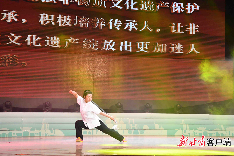 作為華夏文明的重要發(fā)祥地,這里還擁有深厚的文化底蘊(yùn)和富集的非遺資源:現(xiàn)有國家級非遺項(xiàng)目8項(xiàng)、省級50項(xiàng)、市級180項(xiàng),各類非物質(zhì)文化遺產(chǎn)在八千年的歷史中不斷傳承與發(fā)展?;顒蝇F(xiàn)場,清水木人摔跤、武山武術(shù)、秦州夾板舞等節(jié)目展示了這片文化積淀深厚的黃土地上產(chǎn)生、流傳和發(fā)展的“文化絕活”。