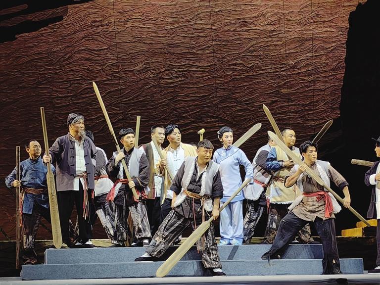 中國甘肅網(wǎng)5月21日訊 據(jù)蘭州晚報(bào)報(bào)道(記者 高宏梅 文/圖)酣暢淋漓的“花兒”唱出了黃河兒女的人間悲喜,韻味濃厚的“嘛簧”一唱眾幫,隴劇戲曲張力無限,“羊皮筏子賽軍艦”的熱血故事成就走心之作……5月19日晚,國家藝術(shù)基金資助項(xiàng)目原創(chuàng)隴劇《大河?xùn)|流》在黃河劇院成功首演,隴劇“梅花獎(jiǎng)”甘當(dāng)配角,“青春力量”首挑大梁,出新出彩的優(yōu)異表現(xiàn)贏得滿堂彩。