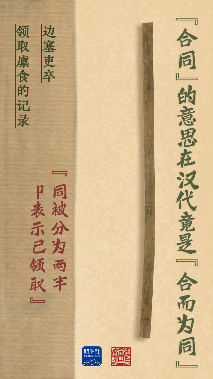漢代人在簡(jiǎn)牘上書寫一個(gè)“同”字,從中間一分為二,由雙方當(dāng)事人各執(zhí)一半。需要核驗(yàn)時(shí),雙方將所執(zhí)半簡(jiǎn)合在一起,這樣就能拼成一個(gè)完整的“同”字?;蛟S,這就是現(xiàn)代“合同”的來歷。