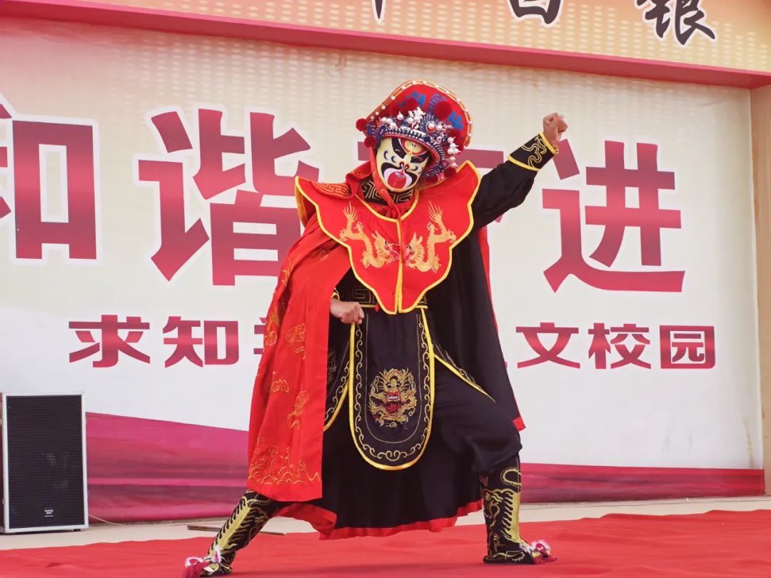 活動現(xiàn)場,戲曲表演者們身著華麗的戲服,用字正腔圓的唱腔和精湛的表演技藝,為師生們帶來了一場視聽盛宴。從《大圣歸來》到《雙官誥·三娘教子》的深情演繹,再到《鍘美案·三對面》和《川劇變臉》的激昂表演,每一場演出都贏得了在場師生的熱烈掌聲。演員們通過圓潤的唱腔和豐富的肢體語言,將劇中人物的情感和命運展現(xiàn)得淋漓盡致,讓師生們感受到了戲曲藝術(shù)的獨特魅力。