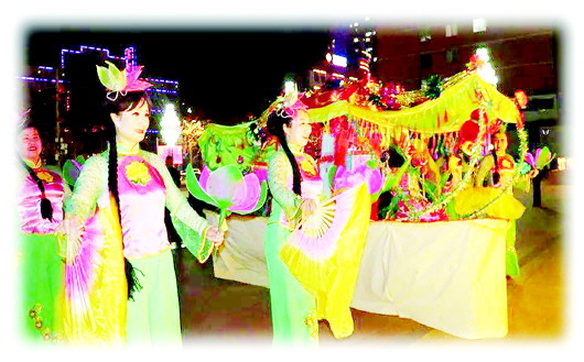 因著葫蘆河的哺育,也有了歷代風(fēng)雅文人、賣漿者流或言志或抒情的傳承,秦安蠟花舞這項民間舞蹈藝術(shù)在千年的時光里熠熠生輝,散發(fā)出迷人的光彩。直至今日,表演時人們都是左手托舉花燈,右手持彩綢折扇,且花燈內(nèi)裝有點燃的蠟燭。