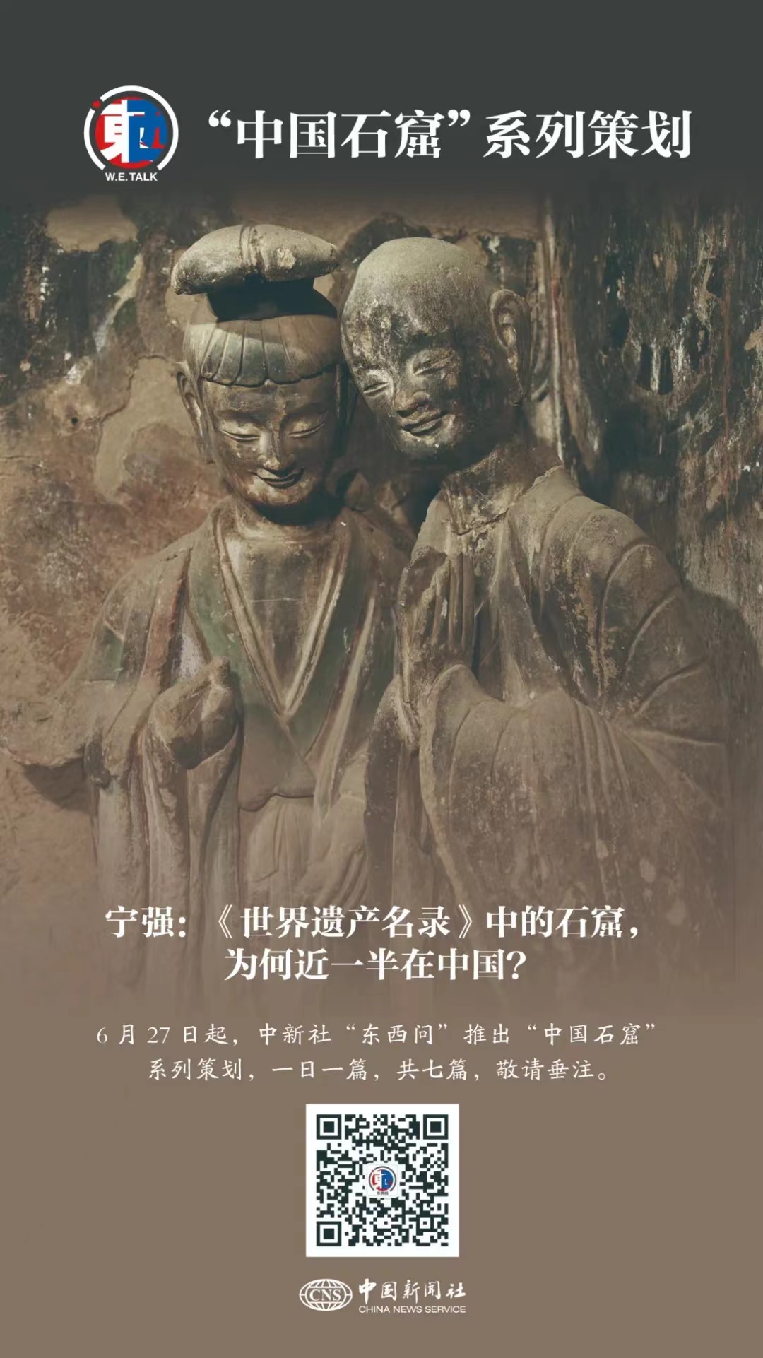石窟,凝結(jié)人類智慧,匯聚多元文化,記錄文明交流。作為石窟遺產(chǎn)大國,中國石窟璀璨如繁星,散落中華大地,串聯(lián)中華文明發(fā)展足跡,勾勒中外文化交流圖景。中新社“東西問”自6月27日起特推出“中國石窟”系列策劃,帶讀者穿越古今,一眼千年,領(lǐng)略中國石窟之美,洞見文明互鑒之光。