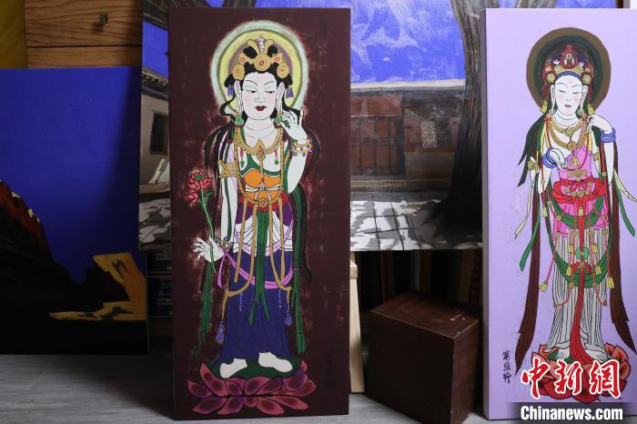 北京外國語大學(xué)藝術(shù)研究院院長(zhǎng)寧強(qiáng)以敦煌莫高窟壁畫為靈感創(chuàng)作的繪畫作品?!⌒煅┈?nbsp;攝