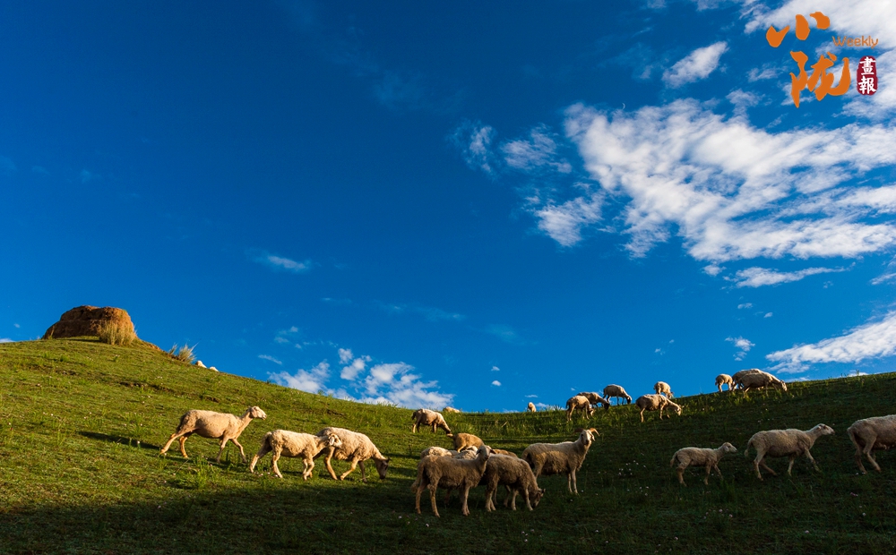 遠(yuǎn)處白云悠悠,百萬(wàn)畝草原一望無(wú)垠,羊群點(diǎn)綴的大草原和那殘存的烽火臺(tái)相映成趣,呈現(xiàn)出一幅綠意盎然的詩(shī)意畫卷。