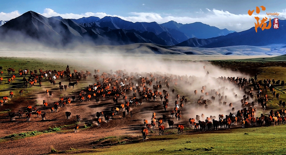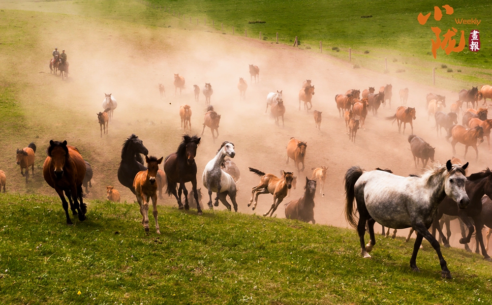 這里有比塞罕壩更壯觀的萬(wàn)馬奔騰。藍(lán)天白云下,一匹匹雄健的駿馬在疾風(fēng)中奔馳,從一望無(wú)際的草場(chǎng)上呼嘯而過(guò),長(zhǎng)鬃飛揚(yáng),浩浩蕩蕩。