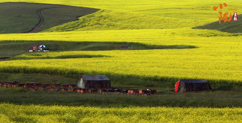 千里沃野,深淺各異、層疊的綠色,又有萬(wàn)頃油菜花鋪天蓋地,連綿起伏,在夏日驕陽(yáng)的照耀下,鋪展成光芒四射、一望無(wú)際的黃金地毯。