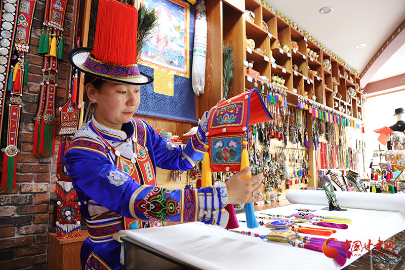 在富達(dá)民族服飾工藝品加工坊里,大河鄉(xiāng)紅灣村裕固族姑娘顧婷,理線、穿針、落針……各種配飾在她指尖翻轉(zhuǎn)騰挪,不一會(huì)兒,就做成了一幅幅精美的荷包、項(xiàng)鏈、耳飾、腰帶……除此之外,她還會(huì)為顧客搭配不同場合需要的服飾、民族工藝品、地方特色旅游產(chǎn)品等。