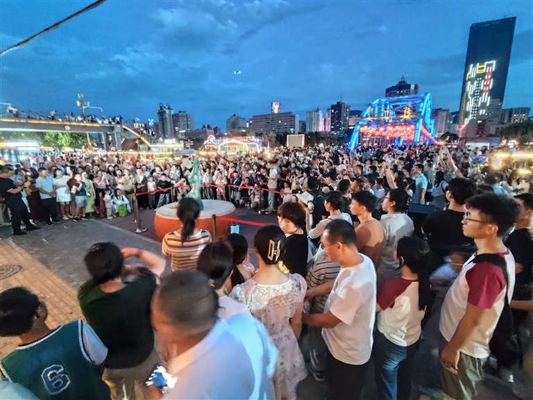 夜游黃河項(xiàng)目則圍繞黃金水道,結(jié)合蘭州南北狹長、“橋梁之都”的特點(diǎn),串聯(lián)黃河母親、中山橋、白塔山,形成“夜游黃河”3條精品航線,開通水上巴士環(huán)線,并依托碼頭創(chuàng)新開展露營、草地婚禮等活動(dòng),全方位展示了黃河蘭州段魅力。同時(shí),黃河之濱音樂展演、黃河市集等豐富精彩的活動(dòng)也已經(jīng)成為“夜游黃河”的常態(tài)化演出和節(jié)目。