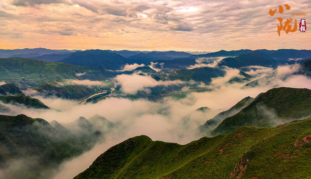 雨后放晴,山谷中的霧氣匯集升騰,化作云海環(huán)繞山峰,光線柔和空氣清涼,放眼望去,白云、青山、洮河、云海構(gòu)成唯美畫(huà)卷。
