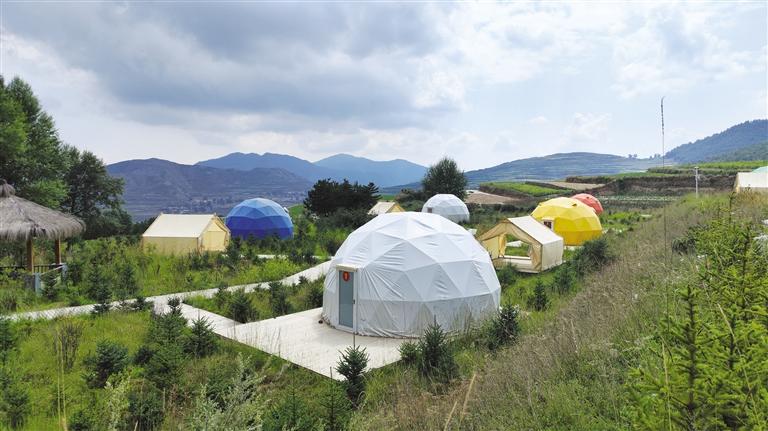 沿興隆山大道進(jìn)入滿目翠綠的原始森林,隨著彎曲的盤山公路走進(jìn)了哈班岔村時(shí),首先映入眼簾的便是層層遠(yuǎn)山間科技范十足的民宿太空艙和造型獨(dú)特的露營(yíng)帳篷,山坡上植被茂密,臨近山腳下的梯田色彩豐富,將一幅自然與人文相互映襯的鄉(xiāng)村畫卷展現(xiàn)在人們面前。