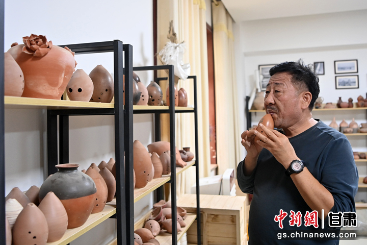中國甘肅網(wǎng)9月5日訊 據(jù)中新網(wǎng)甘肅新聞報道(記者 王牧雨 劉瀟)陶塤是距今3800多年前的火燒溝遺址出現(xiàn)的我國最古老的吹奏樂器之一。1976年玉門市清泉鄉(xiāng)火燒溝文化遺址出土了二十多個制作精美、形似魚形、音色古樸、精致典雅的陶塤,它的旋律幽深、醇厚、悲壯、哀婉,形象表達出人們思想感情和喜怒哀樂。